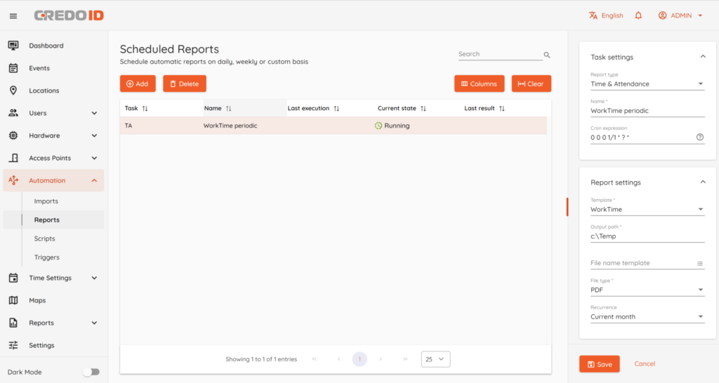 In addition to extended Time and Attendance reports, we have introduced automated generation of Event reports.